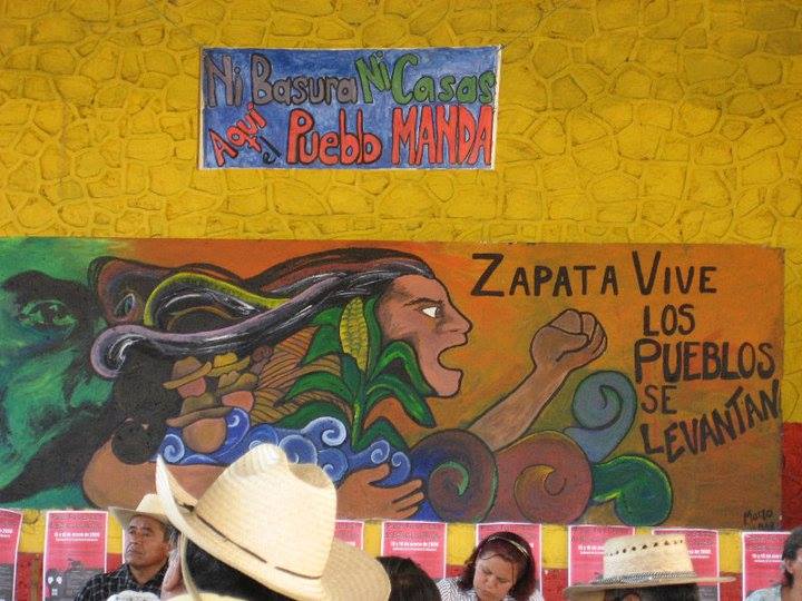 La comunidad indígena Náhuatl de Alpuyeca, se ubica al centro de México, en el estado de Morelos (cuna de Zapata). En el mes de marzo pasado, la asamblea comunitaria decidió no permitir la instalación del basurero estatal en su territorio porque dañaría su salud, agua y tierras.