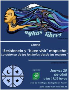 A fines de abril de este 2017, se realizó una exposición y conversatorio en Ben Magec- Ecologistas en Acción, que se denominó “Resistencia y buen vivir mapuche: la defensa de los territorios desde las mujeres”, que fue presentada por Nerea Santana, quien señaló en el marco de esta actividad: “Con todos los respetos y admiración que esta lucha y este pueblo me suponen, he intentado acercar la realidad del pueblo mapuche a esta parte del Atlántico”.