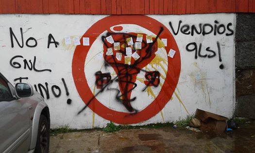 A esto se agregaron rayados que criticaban la corrupción entre el gobierno y las empresas, y que se oponían tanto al proyecto GNL Talcahuano como a su símil GNL Penco-Lirquén a cargo de Biobíogenera.