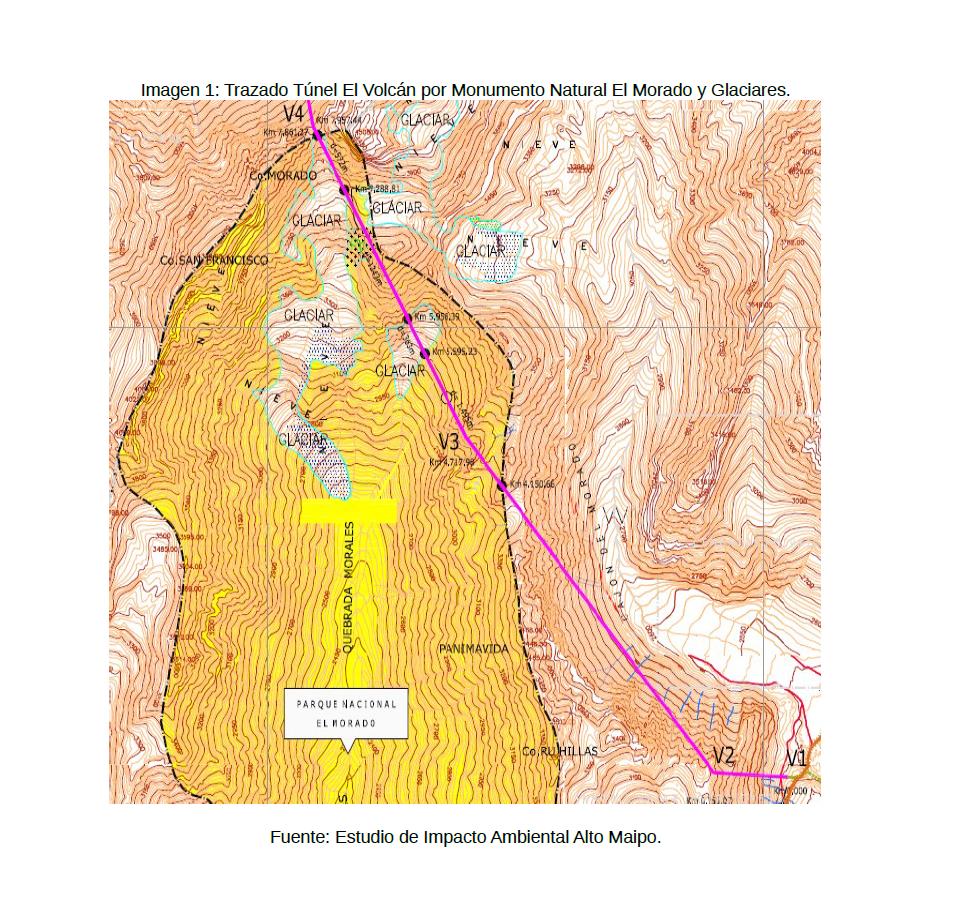 Como Red Metropolitana No Alto Maipo sostenemos que el proyecto hidroeléctrico de Aes Gener incumplió el compromiso adoptado en la RCA de presentar y tener oportunamente aprobado un Programa de Monitoreo de Vibraciones de Tronaduras previo a la construcción del Túnel bajo el Monumento Natural El Morado, pues si bien la empresa presentó un Plan, por un lado, éste no cumple con la finalidad para lo cual se exigió, que es garantizar la no afectación de los glaciares, pero por otro lado, el plan se presentó una vez que las obras de construcción del túnel El Volcán ya estaban avanzadas. Pese a lo anterior, Alto Maipo continúa construyendo el túnel, lo que consideramos ilegal, pues transgrede la obligación establecida en la RCA. Esto solo nos hace pensar en la contumacia de Aes Gener que persiste con el pasar de los años en efectuar una interpretación distorsionada de su obligación y compromiso ambiental.