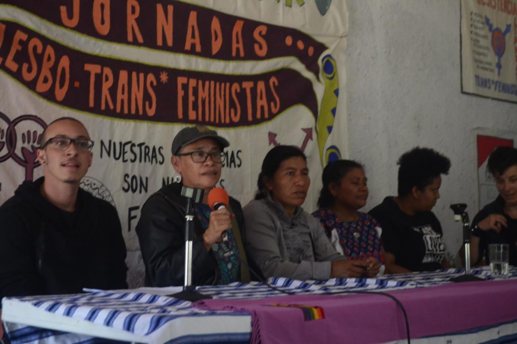 Del 28 de junio al 2 de julio del 2017 se realizaron las Jornadas lesbo-trans feministas en K’inal Antsetik, Centro de Capacitación y Formación de mujeres indígenas, Chiapas, México. El propósito de convocar a estas jornadas fue “promover la escucha, el aprender/ desaprender, la expresión y el fortalecimiento de las luchas feministas a partir de la construcción de alianzas. En contextos de graves violencias hetero-patriarcales, capitalistas, racistas, lesbofóbicas, transfóbicas y coloniales a nivel local, nacional e internacional”.