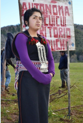 desde los 15 años vengo siendo perseguida, en mi comunidad la única mujer que había venido siendo perseguida, siempre eran los hombres, porque en las recuperaciones de tierras siempre eran los hombres, los detenidos, como que en la tele los hombres, los hombres, ellos los perseguidos, los reprimidos, como a mí me detuvieron a los 15 años, era una niña una mujer, ahí como que se marcó un referente igual dentro de la comunidad, a la mujer se le fue dando otra mirada que tenía más valor, cuando yo tenía 17 años me dieron el rol de Werken dentro de la comunidad, porque eran puros hombres los Werkenes, las mujeres son como para otro tipo de roles y a los 17 años me dieron el rol de Werken ahì empecé a asumir, dentro de una comunicados werkenen tienen distintos rol, todos tienen su rol, está el lonko, aquí hay varios, somos 4 werkenes y todos cumplimos roles diferentes, el mío es el tema de la organización, si hay una actividad me toca asumir para que esa actividad se pueda realizar, si hay un Nguillatum me toca decirle a la gente llamamos a reunión y como que ese es el rol mío, hay un werken que es el encargado de la comunicación, hay otro werken que es el tema de la vocería si hay que hablar es el werken encargado de hacerlo, el mío es el de la organización no es fácil, yo tengo 23 años y el rol de werken es como ser autoridad de la gente, no era fácil decirle a una mujer mayor que yo sabe qué tiene que hacer esto, porque uno es mujer, uno es niña, la gente sabe el rol del werken y lo entendía y así le iban enseñando me iban enseñando a hacer el werken ellos no decían que estaba mandando, ellos sabían no me hacia difícil asumir esa responsabilidad.