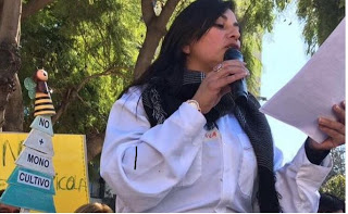 Melisa Pizarro es vocera de APIValpo, la organización que nuclea a los apicultores de la región de Valparaíso. Ovacionada por centenares de apicultores que marcharon desde la plaza Victoria hacia el Congreso, ella entregó un claro mensaje el pasado 16 de agosto al cierre: “Año tras año caen muertas las abejas. Chile es un basurero donde se vierte a destajo lo que en otros países está prohibido. Es necesario prohibir el uso de los agrotóxicos que matan las abejas. Que lo sepa Chile entero, queremos una ley que nos haga tener apicultura sustentable, para que podamos trabajar.
