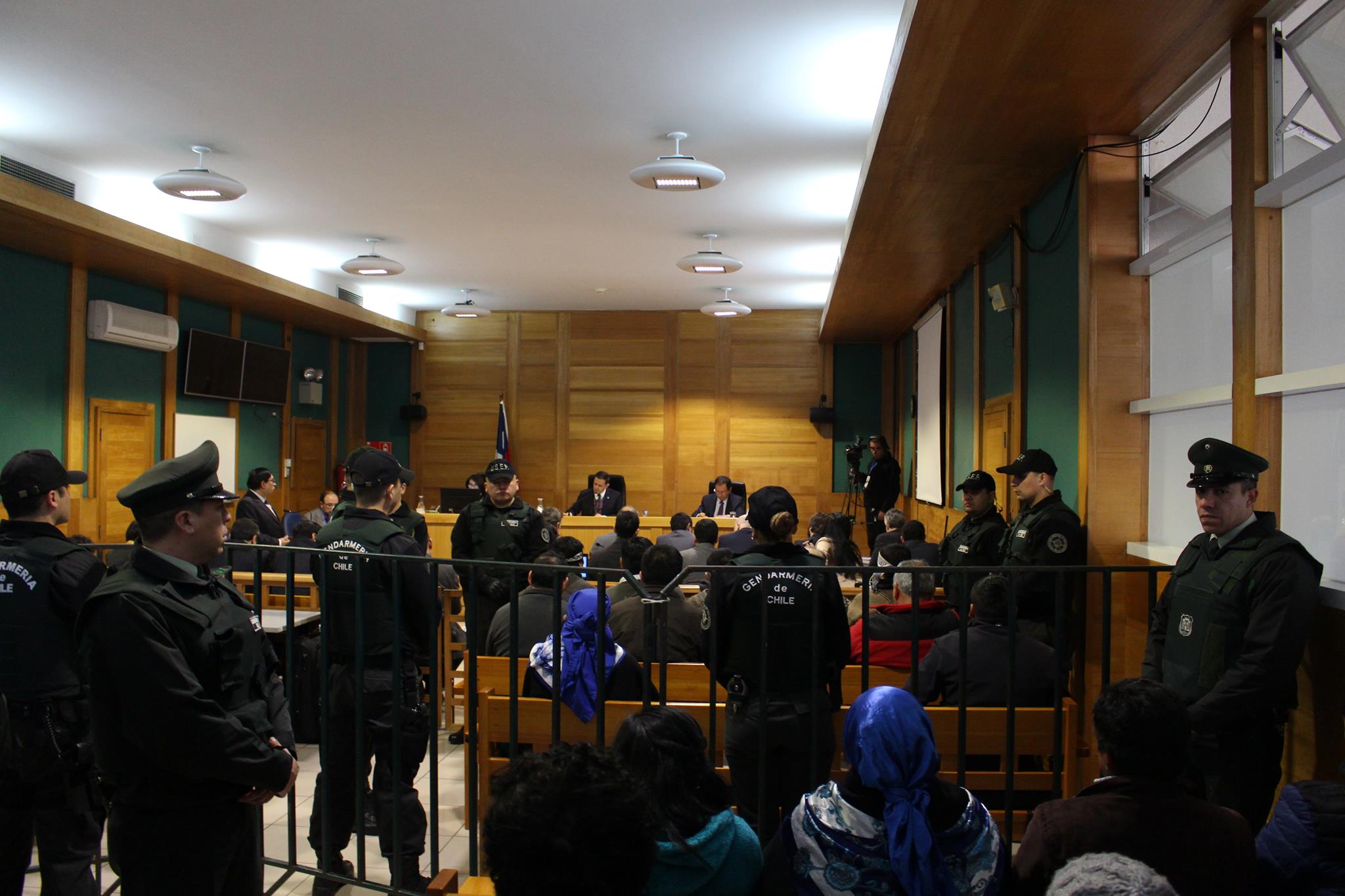 En la primera jornada del juicio, con gran presencia policial y medidas excepcionales de seguridad, pero con más presencia de apoyo a la machi Francisca Linconao y a los comuneros, se dio inicio a un proceso que durará aproximadamente 52 días hábiles y que se estima terminará en diciembre de este año.