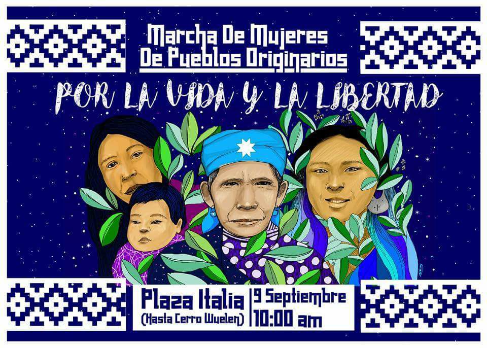 “Invitamos y convocamos a la marcha de mujeres de pueblos originarios, este sábado 9 de septiembre a las 10:00 am. en Plaza Italia (Santiago), esta día conmemoramos el día de la mujer de pueblos originarios, esta fecha es importante pu lamngen, pu wenüy, amigos y amigas porque recordamos junto a la figura de Bartolina Sisa a todas esas mujeres de pueblos originarios que lucharon y luchan por sus pueblos, territorios y derechos en la actualidad como la machi Francisca Linconao, la lamngen Lorenza y recordamos también a la lamngen Macarena Valdés, entre otras. Todas están convocadas”.