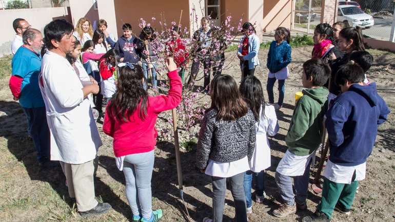 No es la ronda infantil de San Miguel, la que todos alguna vez jugamos cuando éramos niños. Es otra ronda la que veo. Una que se gesta en torno a un árbol de durazno en flor que hermosea el patio de la salita del barrio Pichi Nahuel. La forman el maestro Eduardo Melillán y sus alumnos de la Escuela Primaria 199 cada vez que tienen que preparar el terreno para sembrar verduras y hortalizas. Es una forma de pedirle permiso a la Mapu (tierra) y rogarle que se dé bien la semilla.