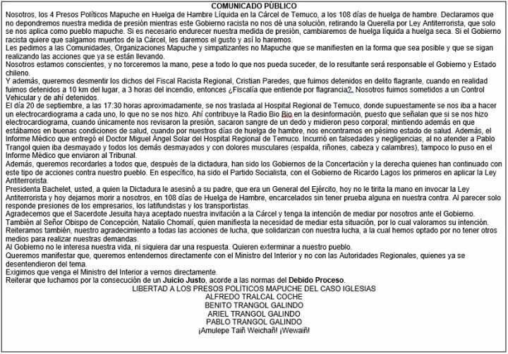 12-12-2025.- Comunicado público. Por Coordinadora por Julia Chuñil, Valdivia. «Mari mari kom pu che, mari…