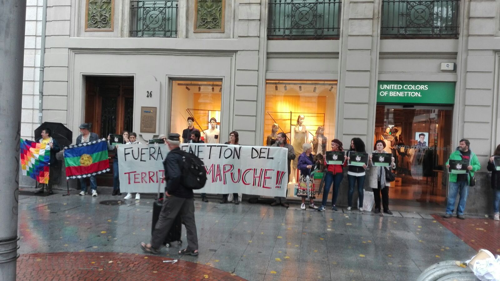 Imagen del 29 de septiembre que involucró una manifestación en las afueras de Benetton por la situación que se vive en Puelmapu (Argentina)