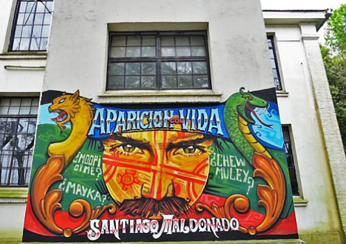 Compañero Santiago Maldonado, mártir, revolucionario, anarquista, solidario con la causa mapuche, Detenido, desaparecido en medio de la represión, por razones políticas enmarcadas en un conflicto histórico, las comunidades mapuches en resistencia de Cushamen y la comarca andina entre otras alineadas al M.A.P(Movimento Mapuche Autónomo Puelmapu).