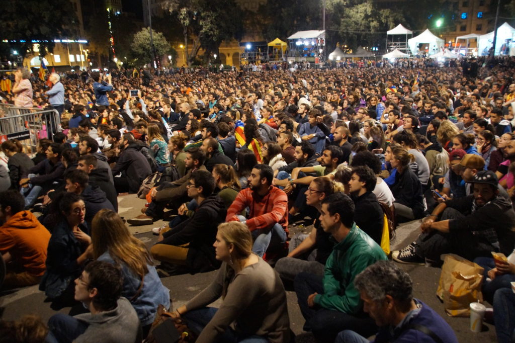 Mientras, la convocatoria ciudadana se traslada al centro de la capital, en Plaza Cataluña. Las organizaciones independentistas han organizado un acto para que la gente espere y celebre los resultados del referéndum. Pero los congregados llevan celebrando desde que terminó la jornada electoral: más allá del resultado, han podido votar. Esa es su gran victoria.