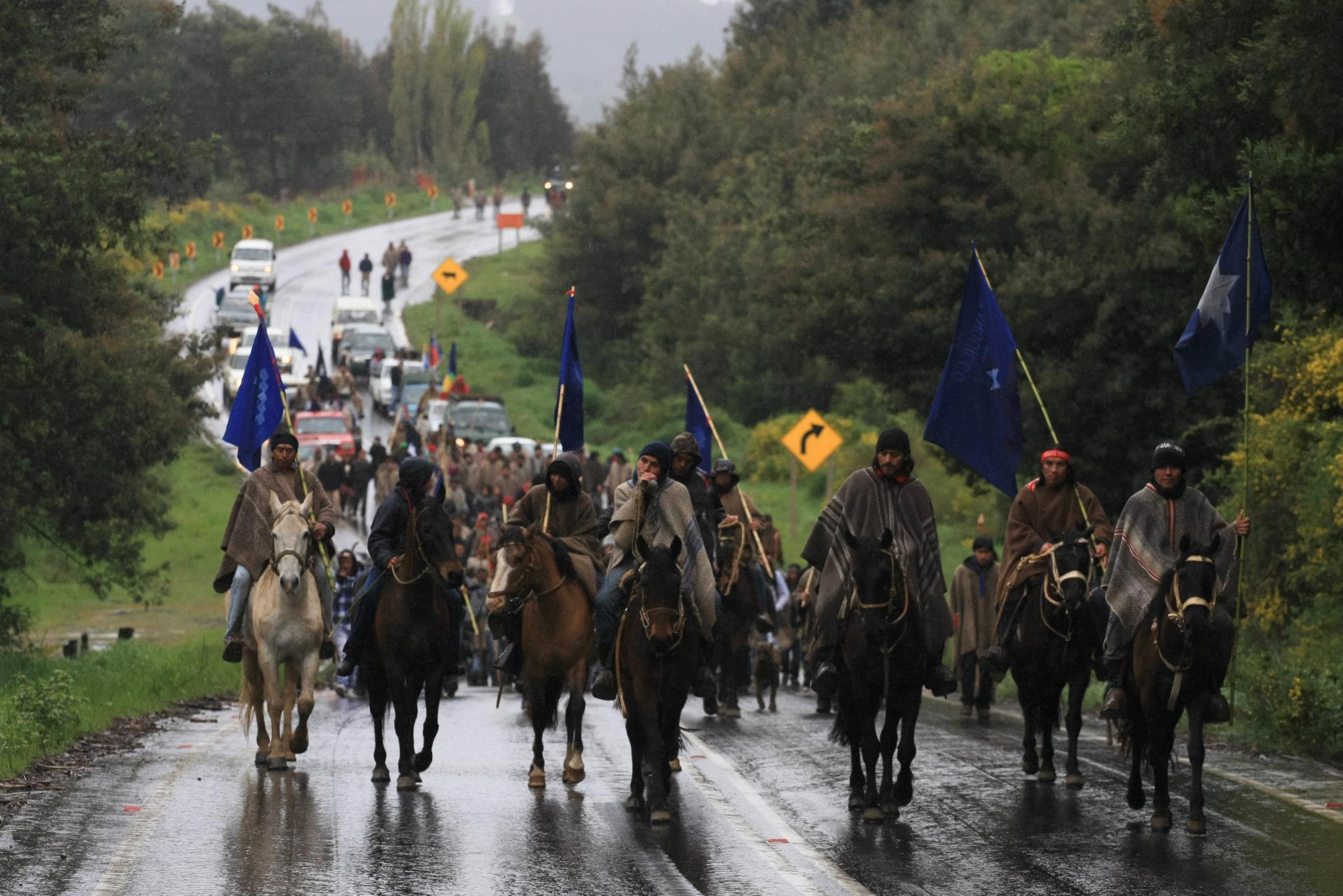 Por su parte en Ngulumapu/Chile, uno de los países modelo de la represión a los indígenas en el continente, se está viviendo un marco aún más violento que el acostumbrado en los últimos años. El 7 de junio cuatro presos –Ariel, Benito y Pablo Trangol y el Lonko Alfredo Tralcal– iniciaron una huelga de hambre depuesta luego de que pasaran más de 110 días, tras cumplir más de un año de prisión preventiva, procesados por la Ley Antiterrorista. Estas largas medidas cautelares (como la prisión preventiva) más allá de buscar condenas efectivas lo que pretenden es criminalizar a los/as líderes del movimiento mapuche y disminuir la presión de las demandas en las comunidades.