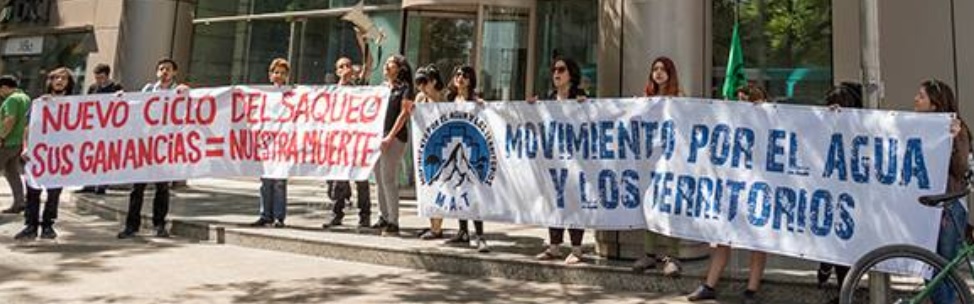 Asimismo, Francisca Fernández, vocera del MAT, enfatizó que “hoy nos estamos movilizando desde Calama a Valdivia, en el marco de una semana contra el sacrificio extractivista, para recuperar el Buen Vivir para los pueblos”. Distintos sectores económico-empresariales proyectan su lucro al año 2018, precisa la vocera: “Es el nuevo ciclo del saqueo, porque estos son los usurpadores históricos de tierras y agua, SOFOFA, la SNA, y todos los multigremios…es por eso que como Movimiento por el Agua y los Territorios, compuesto por más de 50 organizaciones a nivel plurinacional, nos hemos venido organizando para denunciar el extractivismo como causa y origen de nuestras múltiples problemáticas, como la contaminación de los suelos, el aire y el agua”. Esta semana de protestas, aunadas bajo la consigna: “No más Sacrificio Extractivista, a Recuperar los Territorios para el Buen Vivir” contará con distintas actividades programadas en distintos puntos de Chile y culminará con una marcha en Valdivia el día sábado 28 del presente mes.