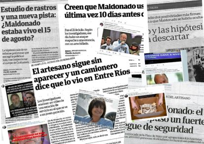 Los medios corporativos no hicieron referencia a la desaparición de Maldonado hasta 3 días después de presentarse el habeas corpus que la denunciaba. Y lo hicieron de manera indirecta, al informar sobre una manifestación en El Bolsón que reclamaba “por un artesano”.