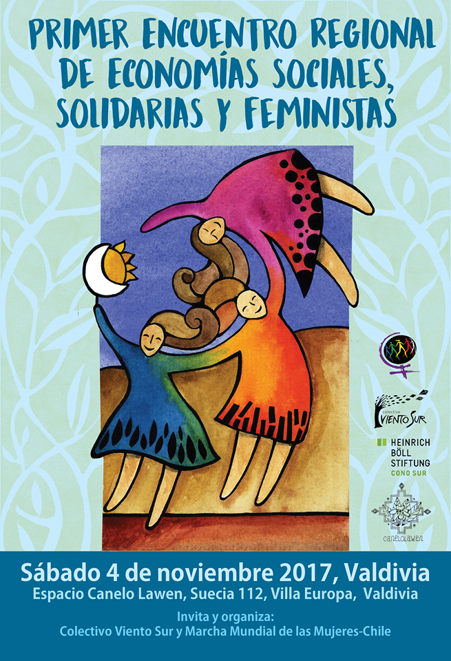 El Colectivo Viento Sur y la Marcha Mundial de las Mujeres-Chile, invitan a participar del “Primer Encuentro Regional de Economías sociales, solidarias y feministas” que se realizará el sábado 4 de noviembre de 10:00 a 16:30 horas en “Espacio Canelo Lawen”, ciudad de Valdivia. La actividad será un espacio de reflexión colectiva sobre los diversos efectos que tiene la estrecha relación entre capitalismo y patriarcado en nuestro territorio y en la vida de las mujeres, para revisar las estrategias de articulación colectiva que existen en la región para subvertir tales opresiones.