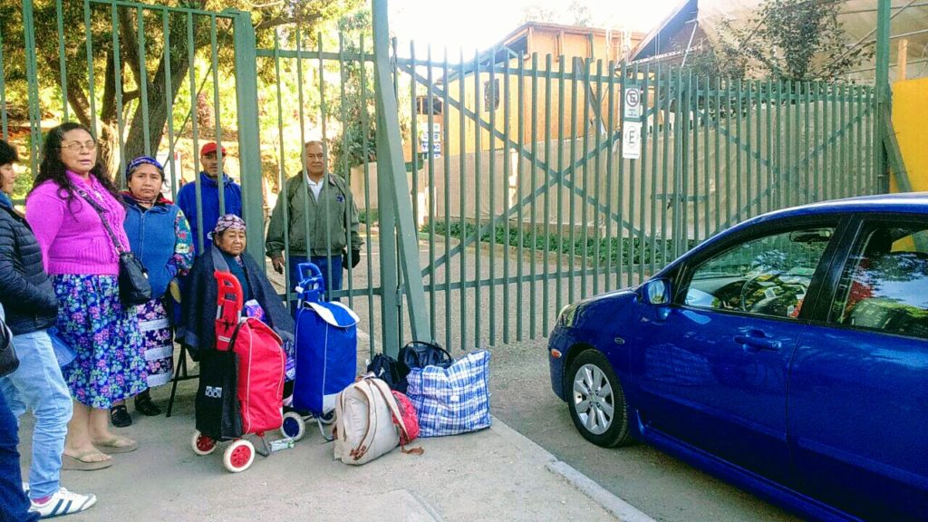 22/11/2017.- Por CONACIN.- Las Machi Juana Llanquileo y María Angélica Llanquinao reciben cada 15 días, desde muy temprano, a sus pacientes en la Aldea de la Paz, Apu Wechuraba, cerro Blanco. El sábado 18 de noviembre no se les ha permitido el ingreso a las zonas 2 y 4 del cerro Blanco a las autoridades espirituales. Las Machi viajan desde la Comunidad Antonio Paillaman Tripailaf, Comuna de Padre de las Casas, Temuco, para atender a gran cantidad de personas.