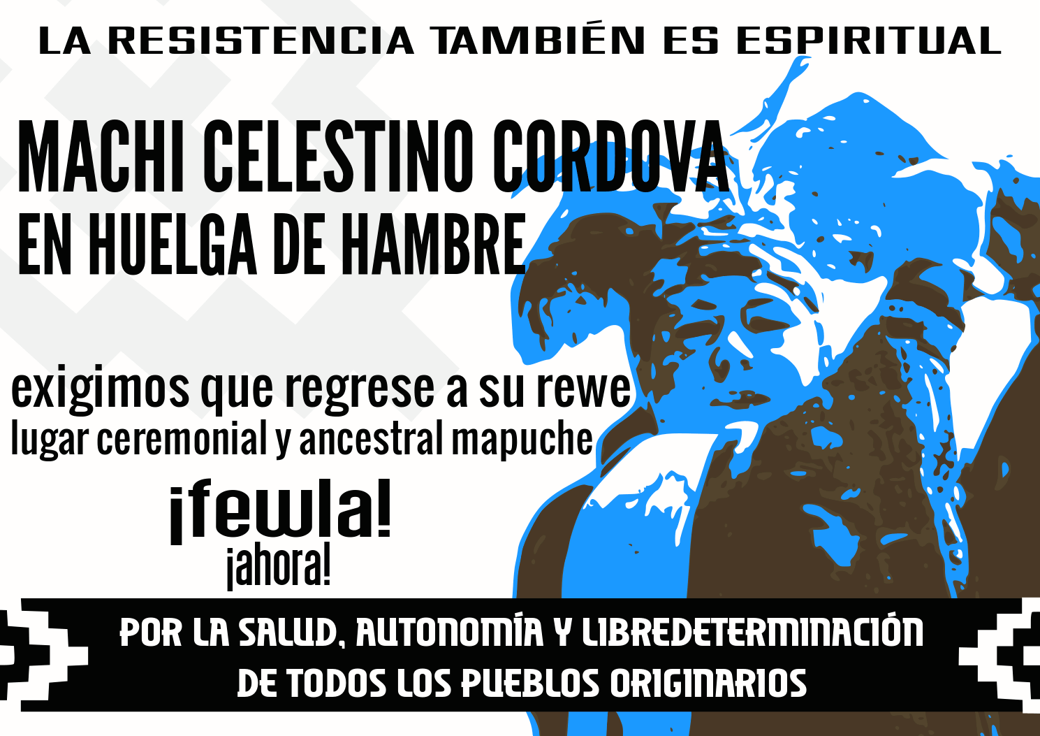“El Machi lleva 5 años sin poder acceder a su altar. Hay que aclarar que los Machi no eligen serlo. Son designados. Y en la práctica constituye una pesada carga. A lo largo de su cautiverio, Celestino ha sufrido un objetivo deterioro progresivo de su salud. El hospital de Nueva Imperial, que tiene una unidad de interculturalidad, a través de médicos tradicionales y un conjunto de machis, constató que Celestino, efectivamente, está expuesto a una muerte temprana por su desconexión con su altar sagrado. Esto significa que el Estado chileno hoy está reinstaurando la pena de muerte debido a la incomprensión de la cosmogonía mapuche. Por eso Celestino decidió adoptar la huelga de hambre. Su reflexión es clara: si no muere en una huelga de hambre, morirá de todos modos por incumplir con sus responsabilidades como Machi. Él lo que demanda es una salida esporádica de la cárcel para asistir a su lugar sagrado. Y siempre ha dicho que si el Estado teme algún intento de fuga, entonces que lo acompañen helicópteros, drones, ejércitos, etc. La ceremonia, que está permitida en los reglamentos penitenciarios, toma 48 horas cada cierto tiempo. Si gendarmería no le ha permitido acceder a sus derechos es exclusivamente por falta de voluntad.”