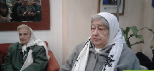 “Decidimos venir acá a partir de haber escuchado a la Madre de Jones Huala llorar en la ruta, esperando un micro que no llegaba para ir a acompañar a su hijo que se estaba muriendo“, contó Hebe de Bonafini, Madre de Plaza de Mayo, al móvil de Radio Gráfica. “Yo sentí que era la misma época nuestra, en que estuvimos tan solas, y que ella -Isabel Huala- no podía estar sola”.