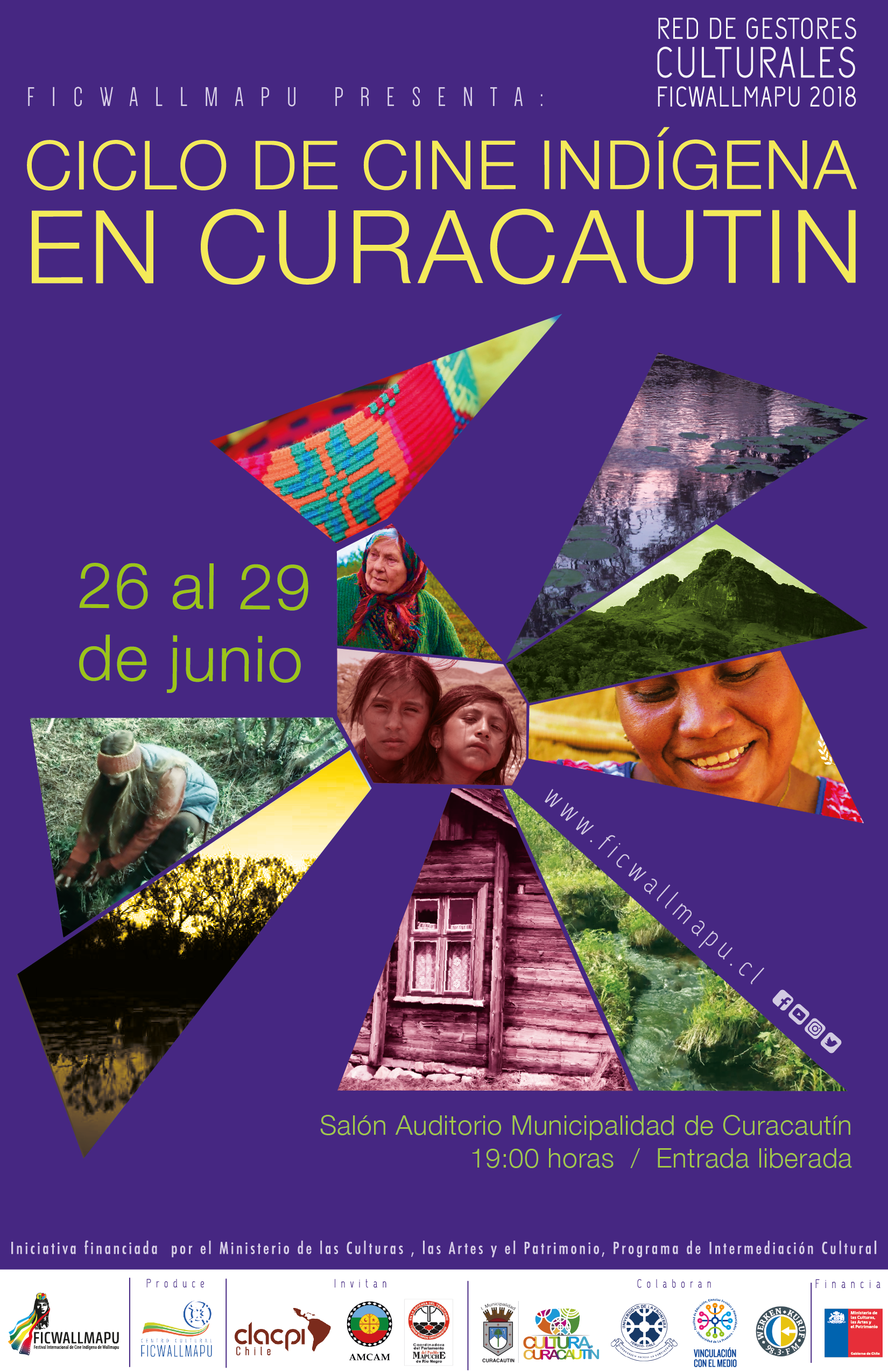 Continuando con la alianza entre el FICWALLMAPU y el Departamento de Culturade la Ilustre Municipalidad de Curacautín, se realizará el Ciclo de Cine Indígena en el Salón Auditorio de la Municipalidad los días martes 24, miércoles 25, jueves 26 y viernes 27 de julio a las 19:00 horas. Al finalizar la muestra se participará de un conversatorio entre los y las asistentes que podrán conocer mediante cortometrajes y documentales las realidades de catorce pueblos: Quechua, Wayuu, Kuna, Mixteco, NuuSavi, Arhuaco, Tehuelche, Atikamekw, Sámi, Yucarés, Tsimanes, Mojeños, Miriwoong y Mapuche. Habrá mate y alimentos para compartir.