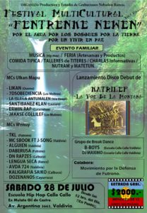 La actividad de carácter familiar se realizará el sábado 28 de julio en la cual se presentarán diferentes artistas del sur de Chile en vivo. Además, se expondrán experiencias de personas, comunidades y organizaciones en la defensa de la ñuke mapu de diferentes lugares del wallmapu.