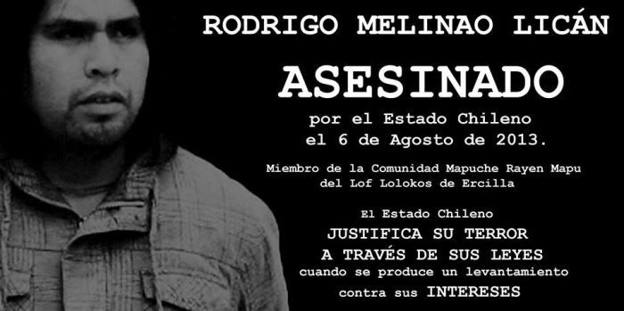 07/08/2018.- RODRIGO ELIECER MELINAO LICÁN al momento de su asesinato tenía 27 años de edad, 4 hijos y era un reconocido dirigente Mapuche perteneciente a la Comunidad Los Lolocos de la Comuna de Ercilla.