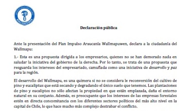 27 de septiembre 2018 Mapuexpress A continuación declaración emitida este 26 de septiembre de 2018 por el partido político mapuche Wallmapuwen como respuesta a plan Impulsa Araucanía presentado por el gobierno chileno. Declaración pública Plan Impulsa