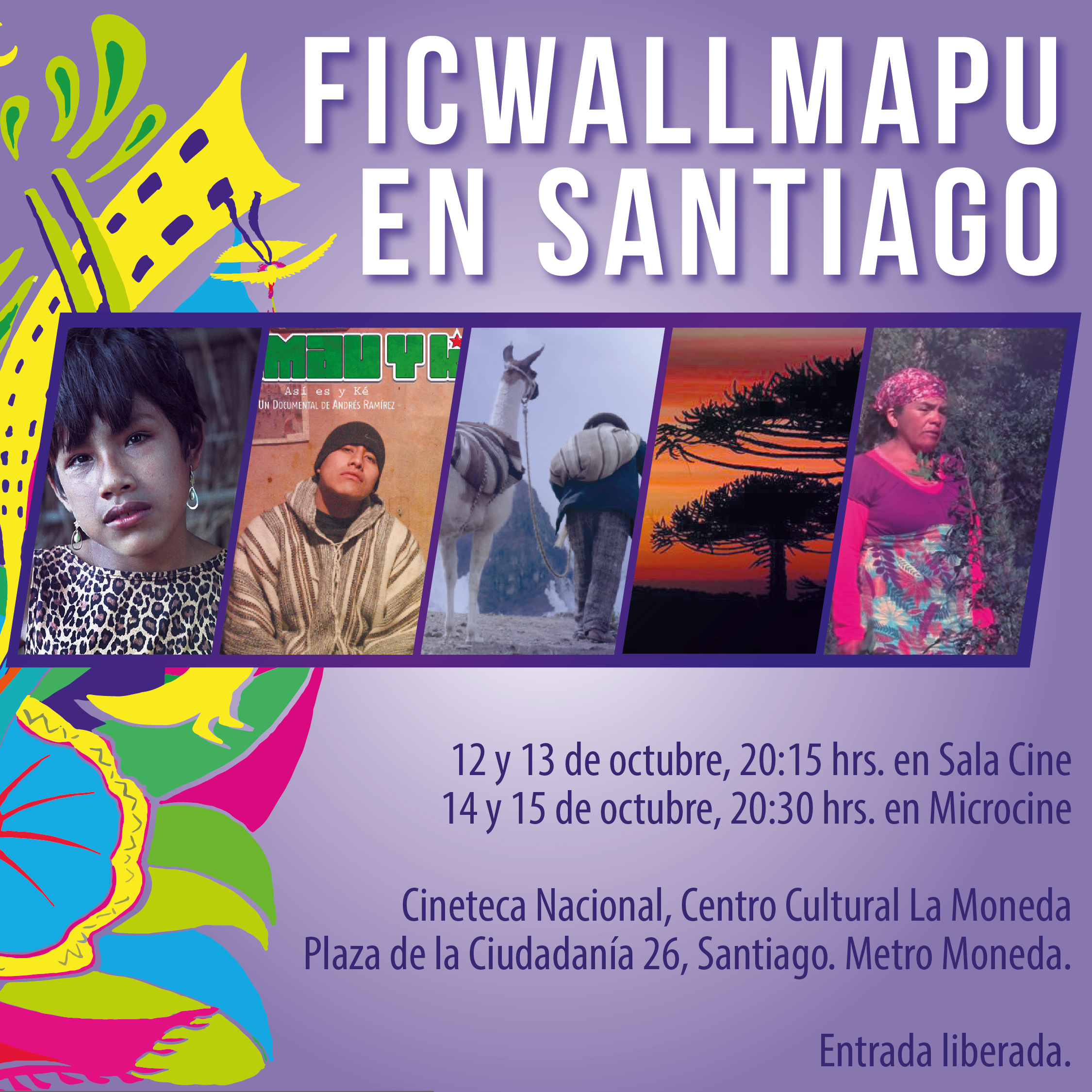 Ficwallmapu en Santiago te invita a conocer la música aymara y mapuche contemporánea, puesta en diálogo hoy sábado 13 de octubre, 20:15 horas en la Cineteca Nacional de Chile, ubicada en Plaza de la Ciudadanía 26, Santiago Centro. Metro Moneda. ¡Entrada liberada!