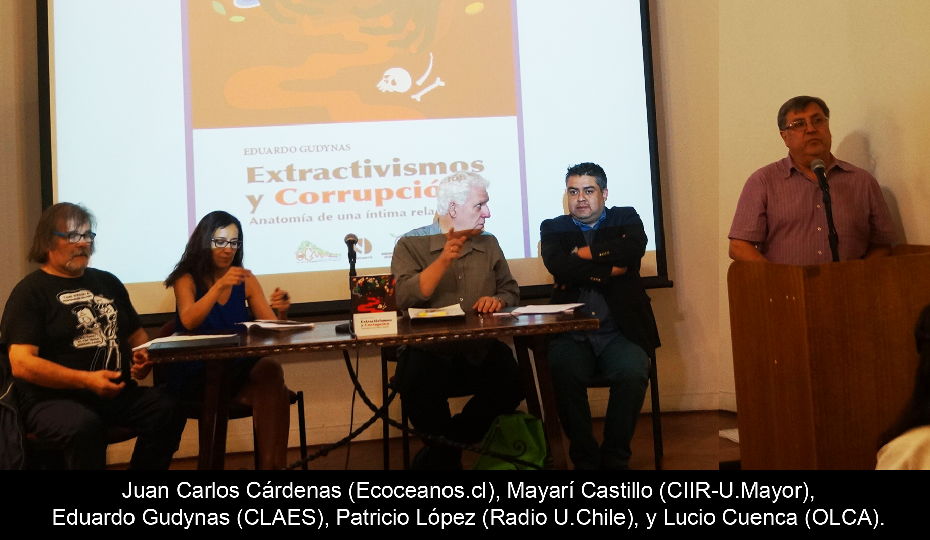 Santiago, 04 de diciembre de 2018. (OLCA.cl)– Un llamado a leer los patrones que repiten los medios de comunicación para entender como la Prensa informa acerca de los proyectos extractivistas, la necesidad de que la Academia indague estos temas, y el ejemplo de pudrición política que dejó la Ley de Pesca aprobada en Chile en 2013 y que privatizó las pesquerías nacionales, fueron los tres ejes de discusión en la presentación del libro “Extractivismos y Corrupción: Anatomía de una íntima relación”, del destacado investigador uruguayo, Eduardo Gudynas.