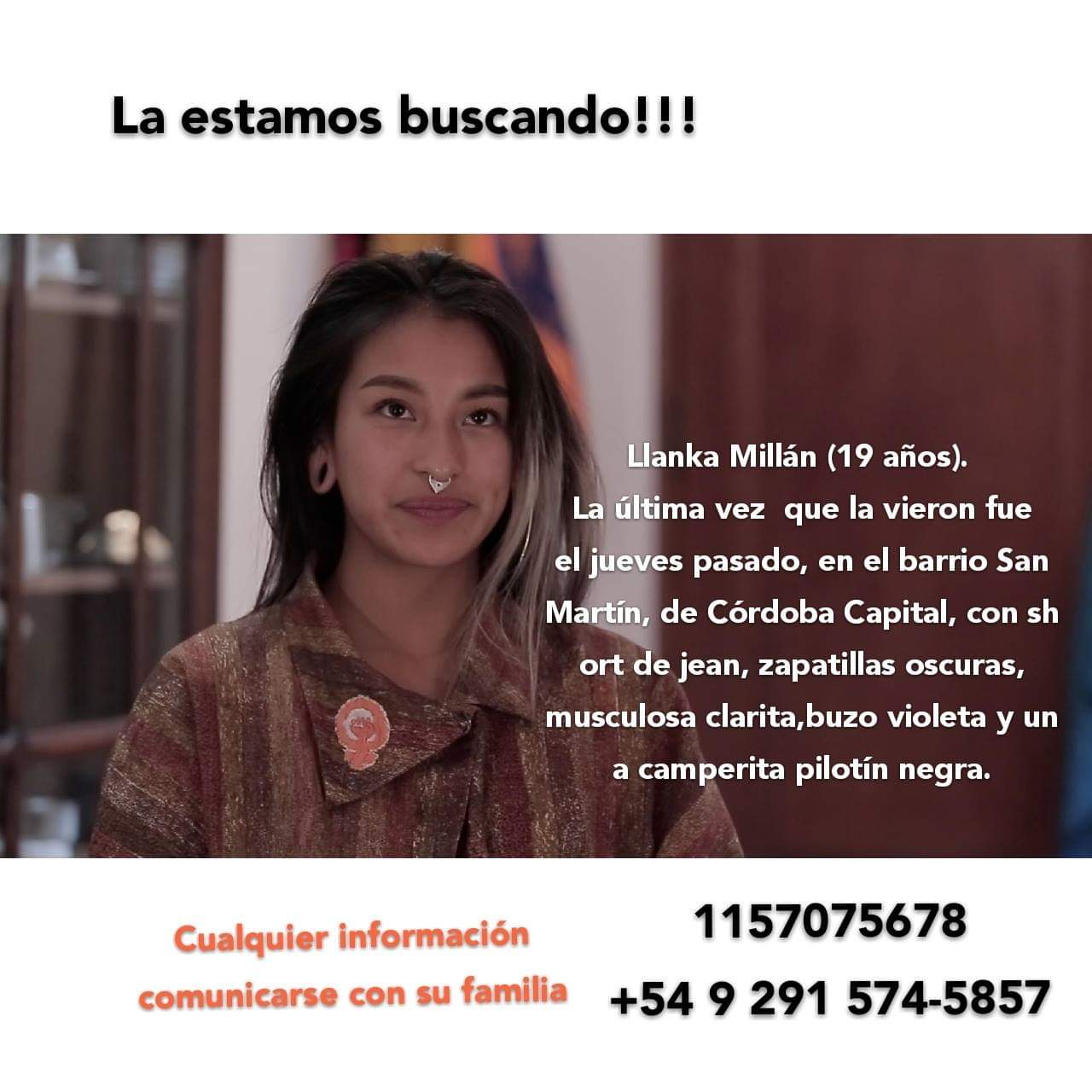 “Urgente, les pido ayuda, no podemos encontrar a mi hija, la última vez que tomamos contacto con ella fue él día jueves, les suplico quien la haya visto me avise. Estoy desesperada”, fue el mensaje que la dirigente y activista indígena y feminista de Argentina, Moira Millán, publicó la noche de este sábado tras la desaparición de su hija Llanka Millán.