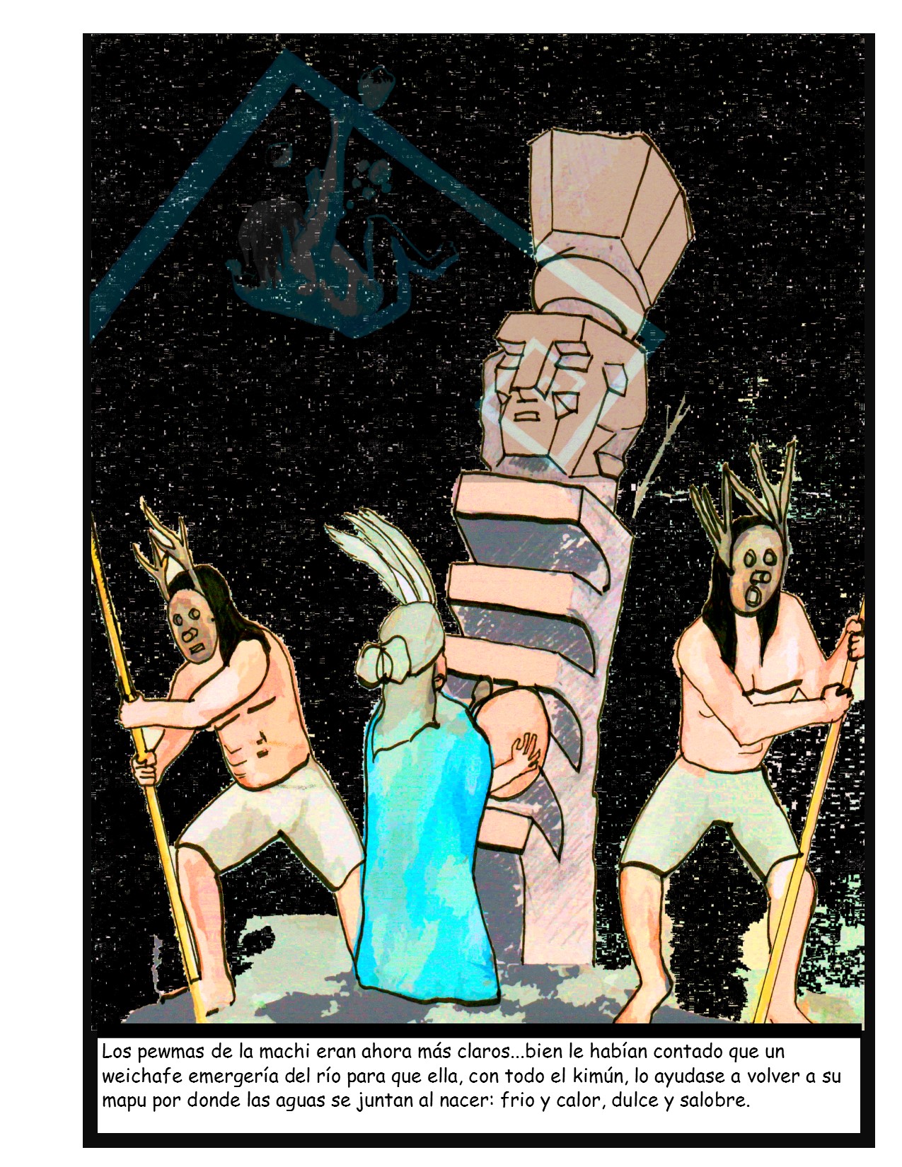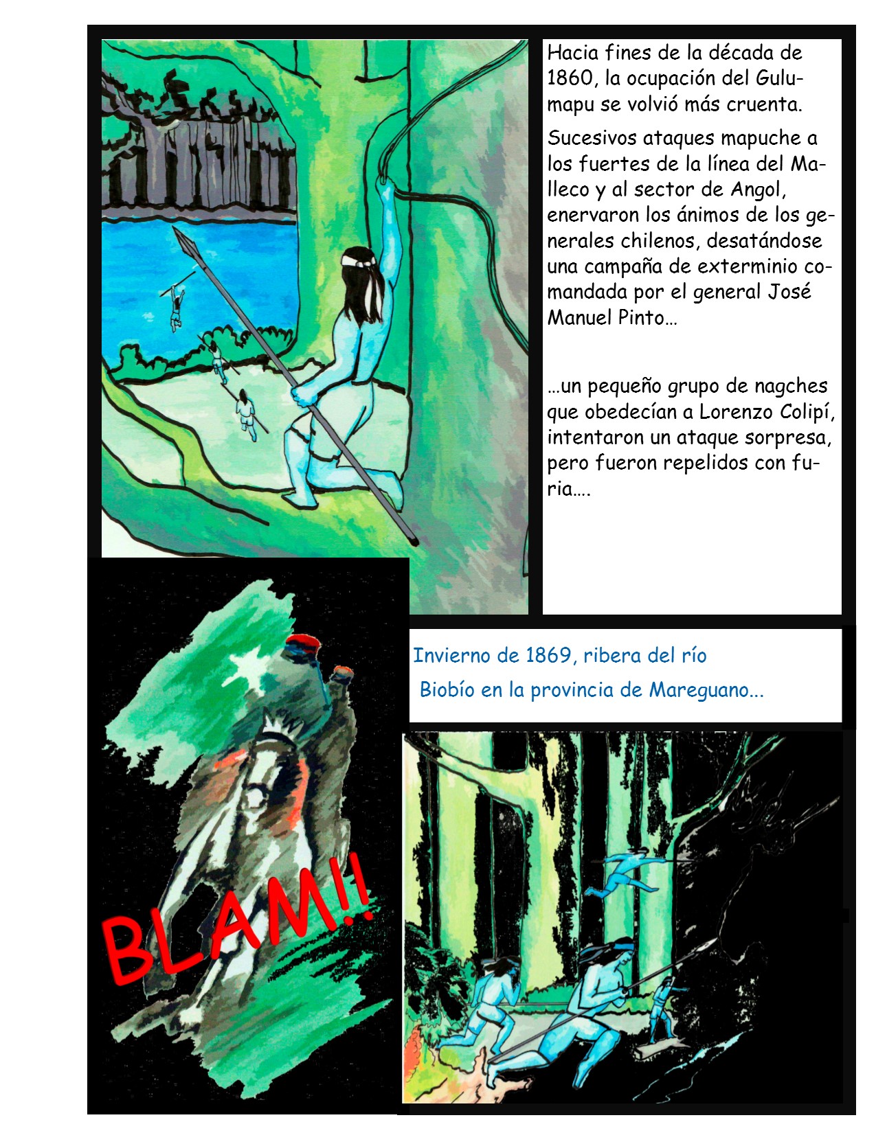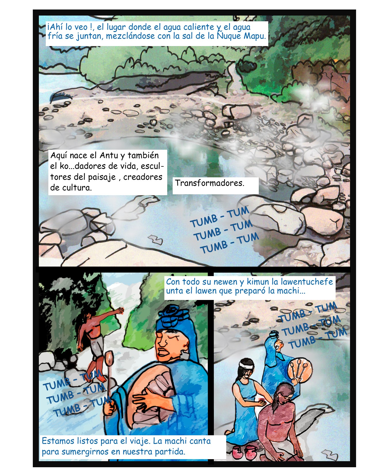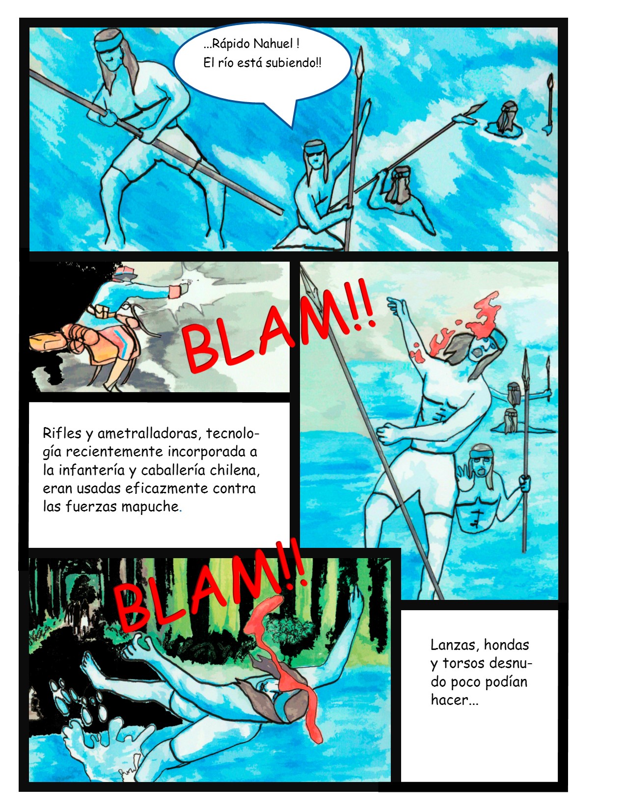 Finalmente, expresa: «Al parecer esta historieta no tenía que ver la luz dentro de un documento de una empresa usurpadora e inundadora de territorios (Central y cortina de Angostura en el Alto Bío Bío cerca de Santa Bárbara) y se mantuvo más apegada a los que me ayudaron a realizarla y a un pueblo nación que merece respeto y reconocimiento».