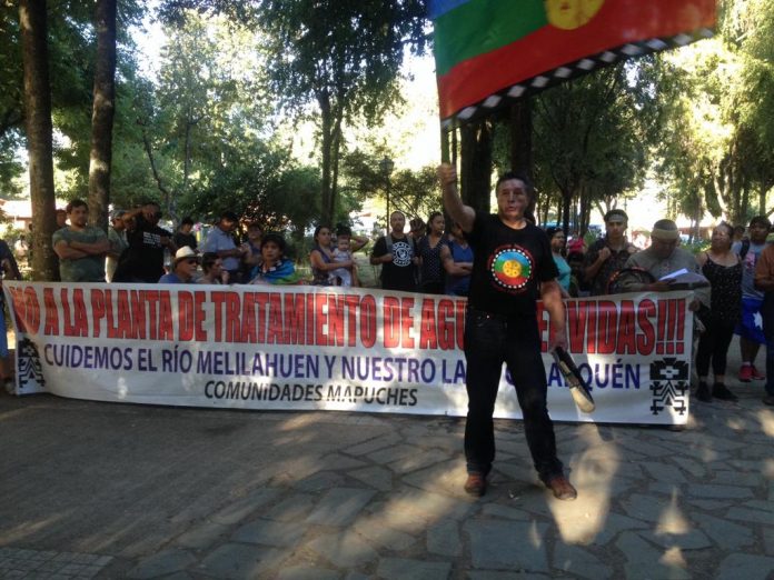 KIÑE: Denunciamos que en nuestros territorios, se pretenden venir a instalar Mega Proyectos dirigidos por grandes empresas interrumpiendo el hábitat natural y espiritualidad ligada a nuestro entorno, Mapuche Feyentun, Kimun y Az Moguen, como por ejemplo; la instalación de una Planta de Tratamientos de Aguas Servidas que la empresa Aguas Araucanía pretende instalar en nuestras comunidades Mapuche, a orillas del río Melilawen que contempla la descarga de agua “tratada” en el cauce del mismo río que desemboca en el lago Kalafquen, la tala indiscriminada de especies nativas para la edificación de dicha planta y el corte de diversas especies arbóreas que son el sustento de nuestra medicina ancestral Mapuche.