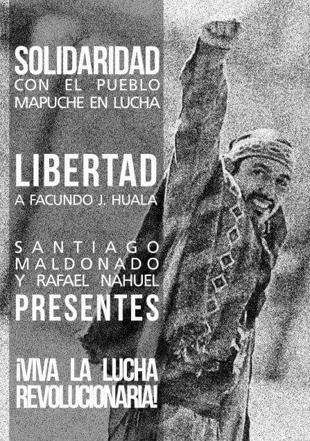 20/03/2019- En Piedra Roja Bar Restaurant (ubicado en Caupolicán 1745, Concepción) se realizará el día viernes 26 de abril desde las 19 horas la Tokata Solidaria en apoyo al preso político Mapuche Facundo Jones Huala. La organización señala: «Lo recaudado es para comprar materiales para que pueda trabajar su oficio retrxfe ( joyas mapuche)».