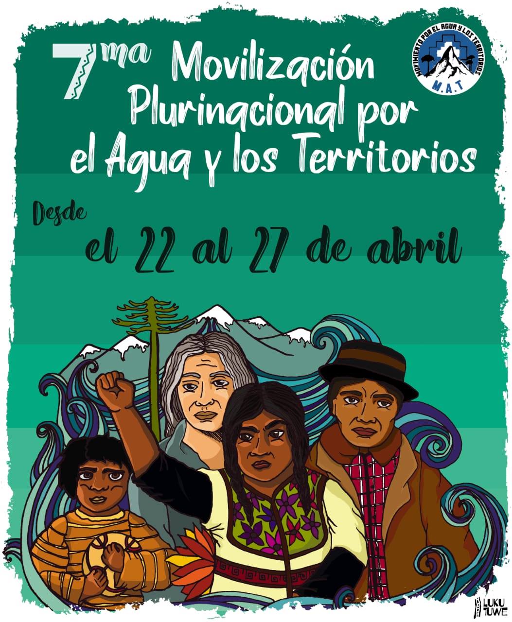 Desde la organización, el Movimiento por las Aguas y los Territorios (MAT), se hace un llamado a participar de las diversas actividades que se desarrollarán para exigir la derogación del Código de Aguas, y con ello, dar fin al modelo extractivista que beneficia a un segmento muy pequeño de la población, privando de este bien común y comunitario a gran parte de los territorios.