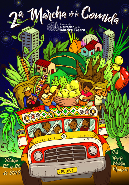 En Colombia se está realizando la II Marcha de la comida, luego de que se sigue sosteniendo con fuerza el proceso de liberación de la madre tierra, donde diversas comunidades recogen cosechas de diferentes alimentos de tierras liberadas de la explotación de monocultivos de caña para biocombustible y compartirlas así con diversos sectores necesitados en diferentes ciudades de este País.