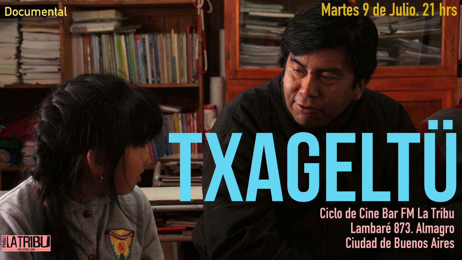 Este martes 9 de julio a las 21:00 se presentará «Txageltü» en FM La Tribu (Lambaré 873). El documental aborda el trabajo de Pedro Ñanco, un educador mapuche que se desempeña en una escuela pública chilena, localizada al interior de su propia comunidad, en el sector de Treke (Los Pinos), al norte de Queule, costa de La Araucanía. Mientras transcurren los ciclos naturales y las actividades del año escolar, así como las conversaciones con sus pequeños estudiantes, Ñanco se pregunta sobre el presente y futuro del mapukimün, el conocimiento mapuche, en su territorio. La actividad finalizará con un conversatorio con educadores mapuche de Chile y Argentina.