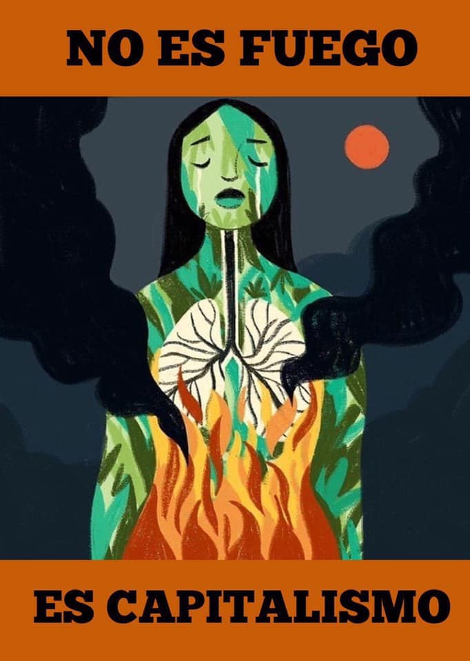 La Amazonía está siendo aniquilada por saqueo capitalista: deforestada por multinacionales mineras y latifundio, codiciadas sus tierras para el agro industrial, la ganadería masiva, codiciados sus recursos para el aberrante modo de producción capitalista. Lleva tres semanas ardiendo. Miles de animalitos calcinados, decenas de especies ya en extinción desapareciendo, la mayor selva del planeta diezmada, pueblos indígenas desplazados y exterminados al extinguirse su hábitat… Y todo para que un puñado de multimillonarios capitalice sobre el saqueo del planeta.
