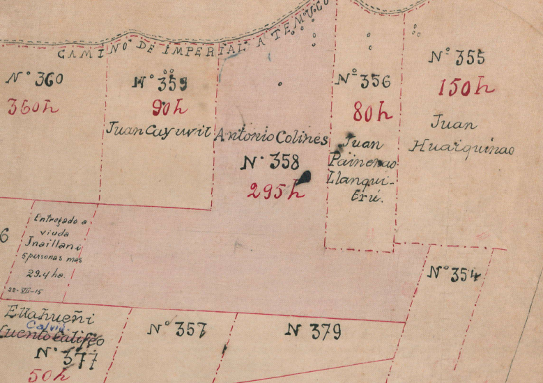 Titulo de Merced de la Comunidad Antonio Coline y Juan Painenao que puede contrastar mapa anterior donde se ve el emplazamiento del proyecto “Loteo Labranza”.