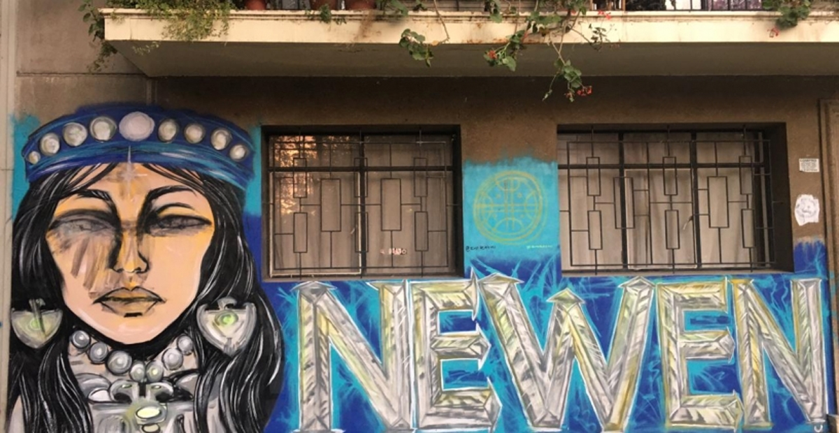 Cerca de la Casa Central de la Universidad Católica nos cautivó el grafiti Newen kimelfes («fuerza profesores«). Siempre hemos necesitado newen para restituir el uso de un idioma minorizado, discriminado y para enseñarlo con la belleza que requiere su valoración.