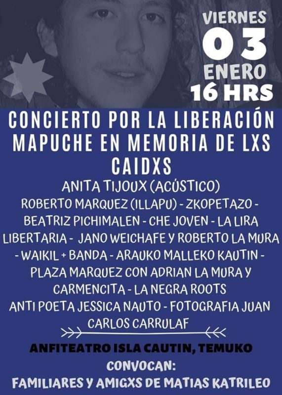 Justamente es en el marco de la conmemoración de los 12 años de la muerte del joven mapuche que la banda trasandina cumplirá la primera de sus presentaciones en nuestro país, el viernes 3 de enero en el recinto de Isla Cautín, en Temuco. También realizarán un concierto en Santiago el día 5 de enero.