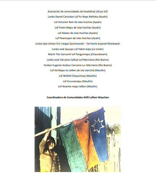 AILLA: Denunciamos la utilización de los nombres de comunidades en declaraciones públicas emitidas por el mencionado “Consejo Mayor”, sin preguntarnos y autoproclamándose nuestros representantes. Estas son las comunidades cuyos nombres fueron usurpados: Inkopulli de Yaldad, Piedra Funda de isla Caguach, Las Dalias de isla Caguach y Mapu pino de isla Lin Lin.