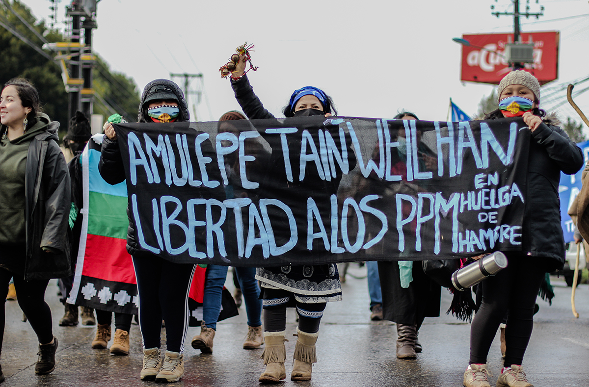 A la violencia del Estado chileno, la represión policial y el asedio de los terratenientes y las multinacionales, los presos políticos Mapuche utilizan la huelga de hambre sólida y líquida como herramienta de resistencia en sus propios cuerpos. Tratados como “terroristas” y señalados como el “enemigo interno” por los medios del poder económico, los huelguistas entregan su newen (fuerza) para buscar la libertad de su pueblo.