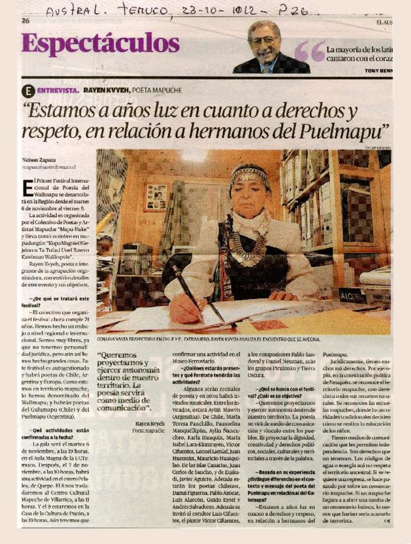 El Colectivo de Poetas y Artistas ha participado, siendo también activo en los espacios de movilización, del pueblo mapuche, ha exigido la libertad de los prisioneros políticos mapuche y lleva adelante un férreo trabajo por la vigencia de la cultura del pueblo mapuche, principalmente, a través de la poesía y las artes, siendo el Festival de Poesía del Wallmapu una de sus principales iniciativas.