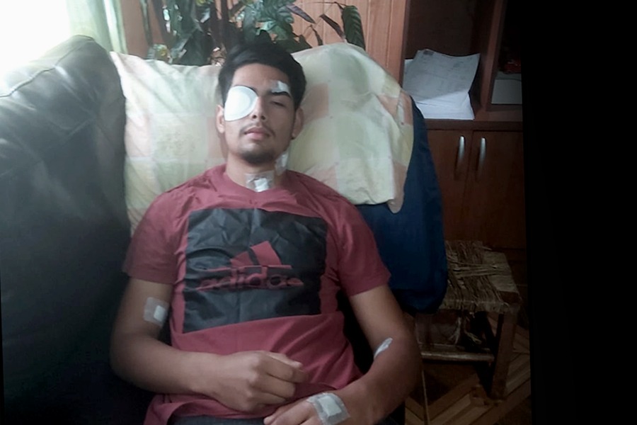 El joven recibió un impacto de perdigón en su ojo derecho el pasado 24 de abril, en medio de un trawun –reunión– en Nueva Imperial. “Este era un encuentro pacífico”, señala el estudiante de construcción civil que hoy está a la espera de ser trasladado a Santiago para iniciar un tratamiento. Acá adelanta que interpondrá una acción judicial contra el funcionario policial responsable de este hecho.