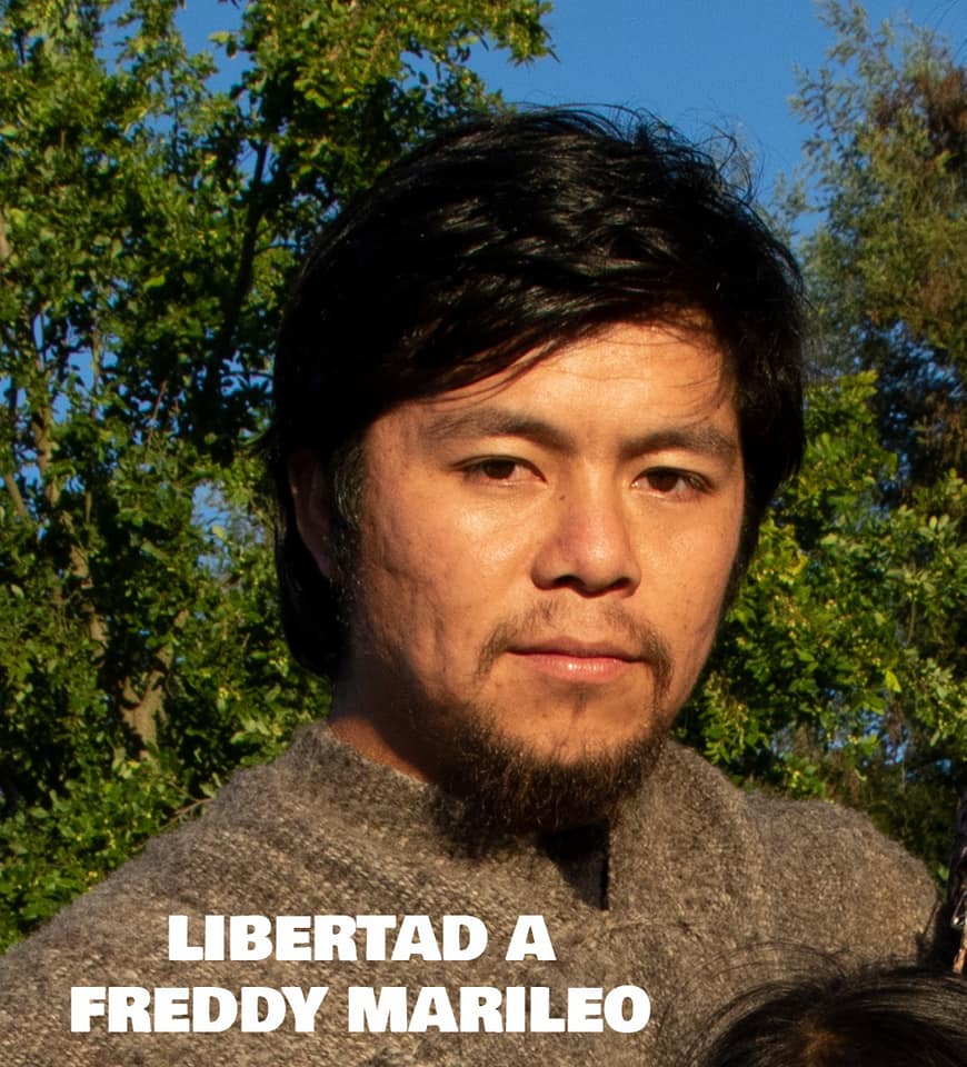 MELI: Freddy Marileo lleva más de 2 años en Prisión política y el fiscal Felipe González busca una condena de 22 años acusándolo de homicidio simple, porte, tenencia y receptación ilegal de arma. Todo esto sin investigar que hacían los yanaconas armados y sus cómplices, a los que nuestro peñi se enfrentó, sin ni siquiera averiguar quién los mandó o que intereses defendían.