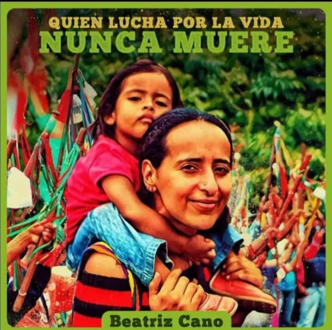 Las lágrimas no pueden evitar salir con tristeza a causa de saber de la pérdida de una entrañable compañera de vida y de lucha: Beatriz Elena Cano Uribe, fallecida a los 34 años, el día 7 de junio de 2021 por complicaciones en su estado de salud, tras los fatídicos acontecimientos ocurridos el pasado viernes a causa de un atentado perpetrado por hombres armados que se beneficia y se lucran de la guerra contra el pueblo.