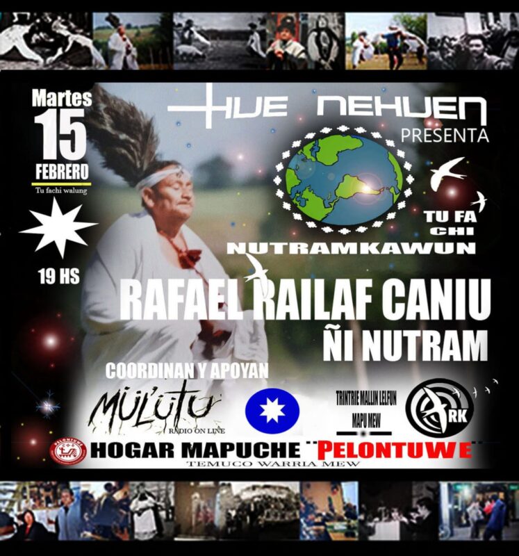 El martes 15 de febrero se realizó en el Hogar Mapuche Pelontuwe un nutram con don Rafel Railaf Caniu, histórico militante mapuche que desde el territorio de Huinca Railao y asentado luego en Trentre Mallin fundó junto a su comunidad y un grupo de militantes del MIR el asentamiento Lautaro del MCR (Movimiento Campesino Revolucionario).