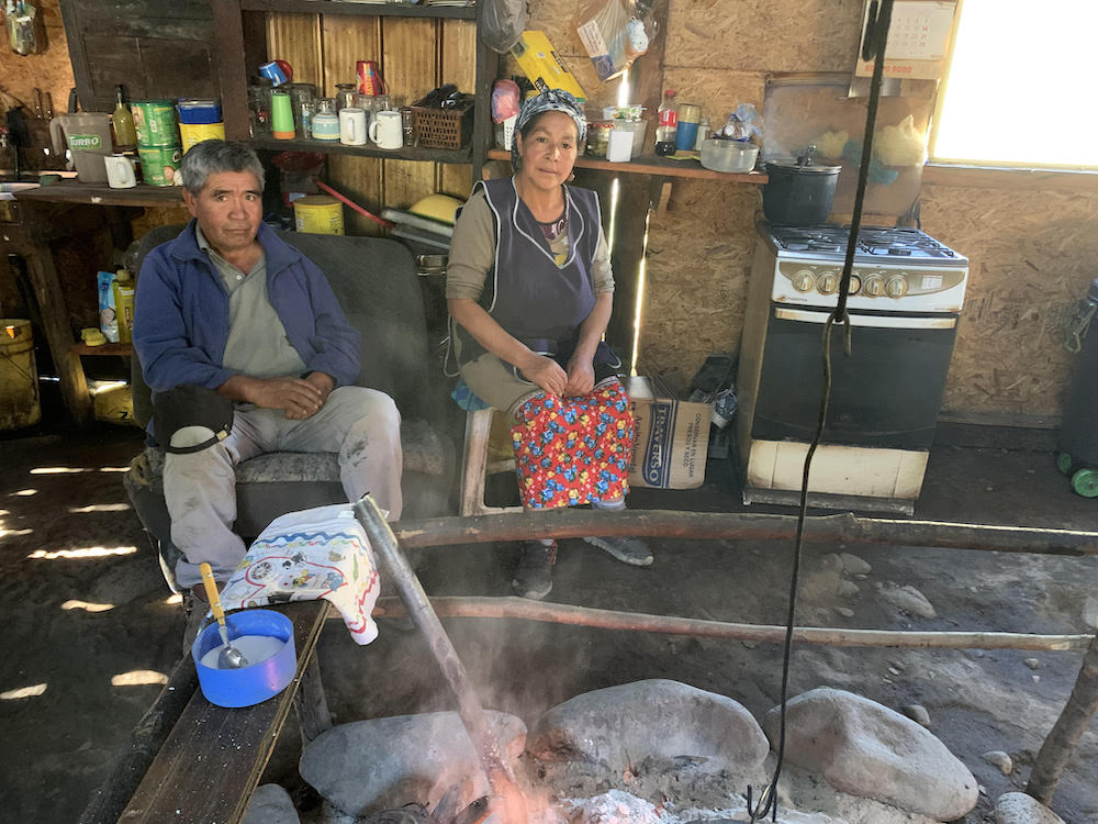 En el cajón del río Queuco, que hasta ahora no ha sido intervenido, vive el lonko Segundo Suárez Marihuan (56). Habla pausado y dice que es importante conversar alrededor de un fogón o al aire libre. Carmen Martínez, esposa del lonko, va poniendo agua al mate que comparte, se comunican en el idioma del pueblo Mapuche, mientras se va cociendo mote (grano de trigo hervido y pelado) en ceniza en el centro de su casa de piso de tierra. Uno de sus nietos juega con un pequeño ñarki (gato). Viven en un territorio recuperado en la comunidad mapuche de Malla Malla.