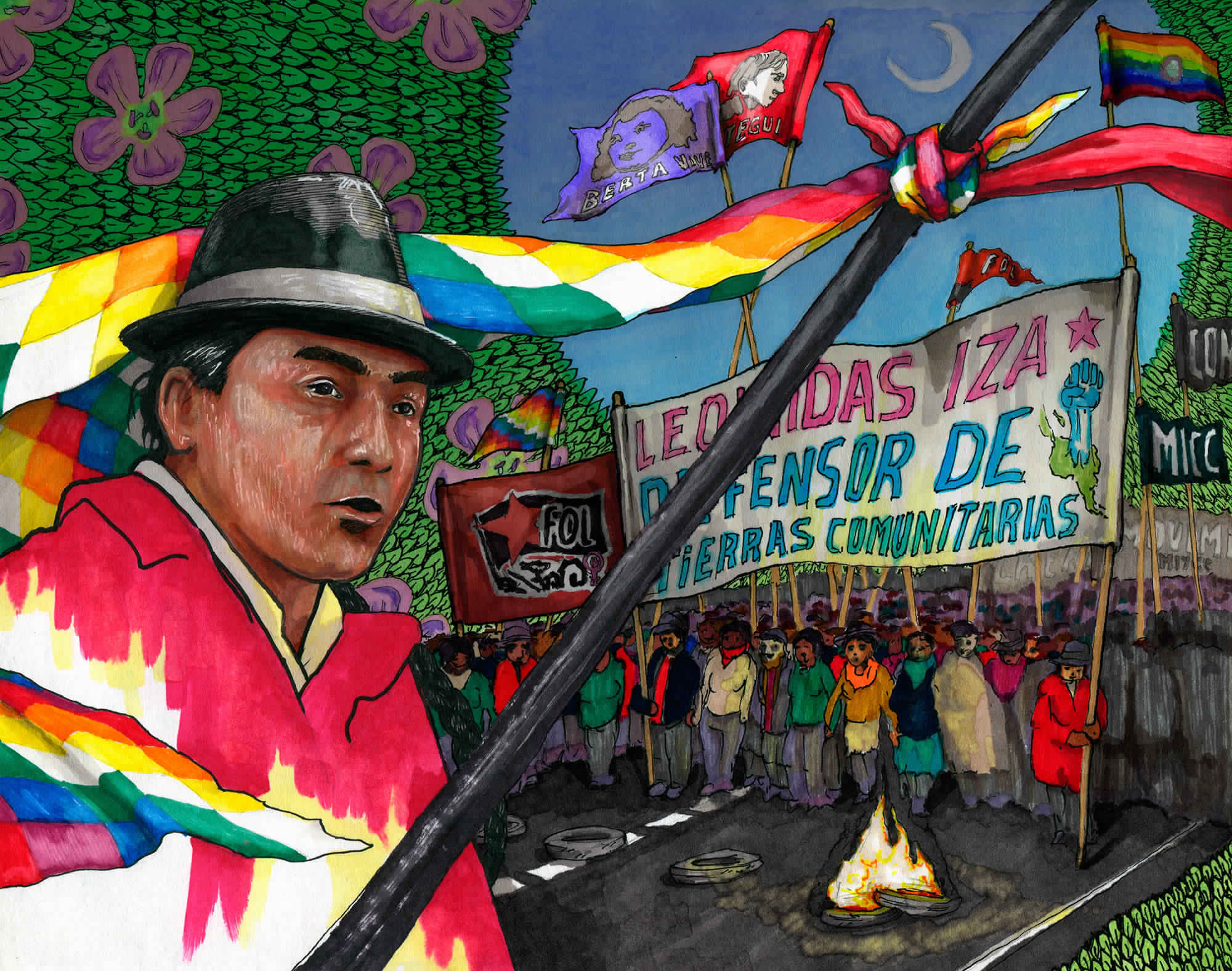 Leonidas Iza tiene 39 años. Es parte del pueblo Panzaleo, la denominación del pueblo Kichwa de Cotopaxi. Como presidente del MICC, el Movimiento Indígena y Campesino de su provincia, se transformó en uno de los máximos referentes de las movilizaciones de octubre de 2019. Las jornadas de protesta se iniciaron tras el anuncio de Lenin Moreno de un paquete de medidas económicas acordadas con el FMI, donde destacaba el decreto 883 que eliminaba el subsidio a los combustibles. Las masivas movilizaciones se difundieron por los centros de las principales ciudades, así como en las rutas nacionales. El país se volvió intransitable, mientras decantaban en Quito las marchas más importantes, convocadas por la Conaie, junto al Frente Unitario de Trabajadores (FUT) y sectores de estudiantes, además del paro de transportistas.