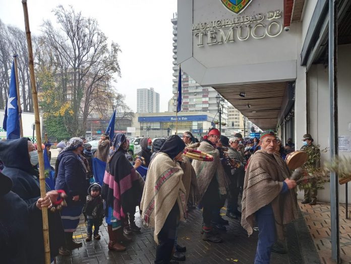 En compañía de las constituyentes Rosa Katrileo y Manuela Royo, diversos/as representantes de comunidades mapuche de sectores de Temuko entregaron una propuesta de ordenanza municipal para que el gobierno regional instaure políticas para revitalizar el mapudungun pero con participación mapuche.