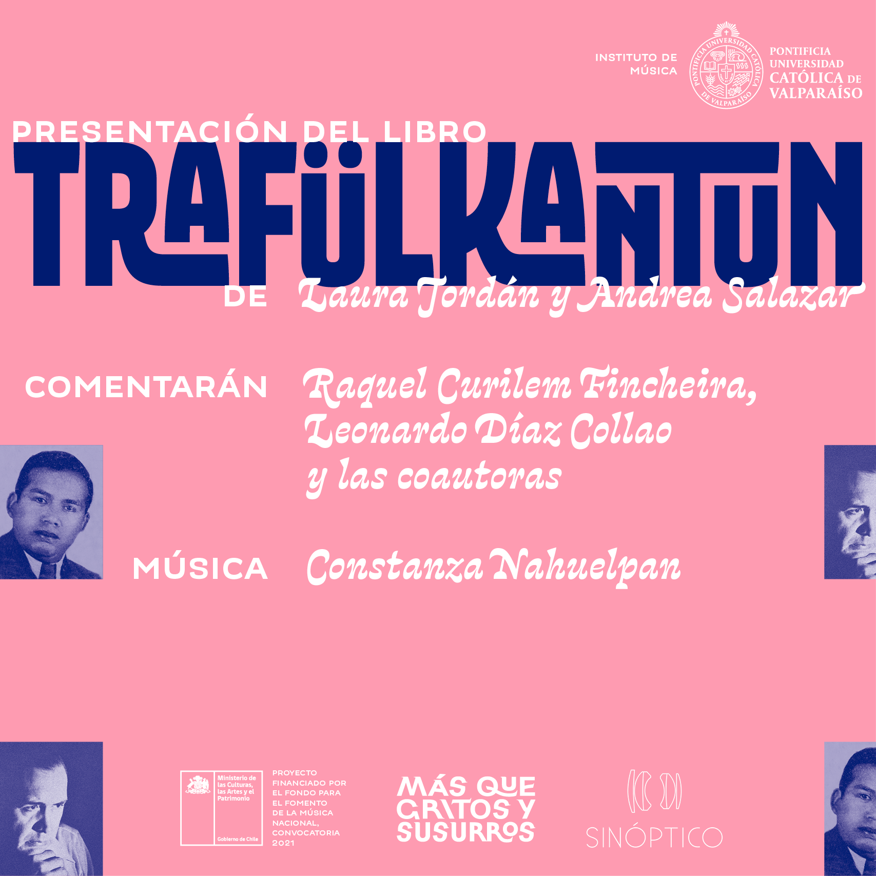El evento será el 29 de noviembre a las 19.00 horas en el Aula Margot Loyola, en el Instituto de Música de la PUCV, ubicado en calle Pilcomayo 478, Cerro Concepción, Valparaíso. Como comentaristas participarán el Dr. en musicología Leonardo Díaz Collao, la investigadora y docente Raquel Curilem y las coautoras. Además, la cantautora viñamarina Constanza Nahuelpan interpretará siete ülkantun inéditos recogidos en 1940 por Curilem, recopilación por la cual fue nombrado “el primer musicólogo mapuche”.