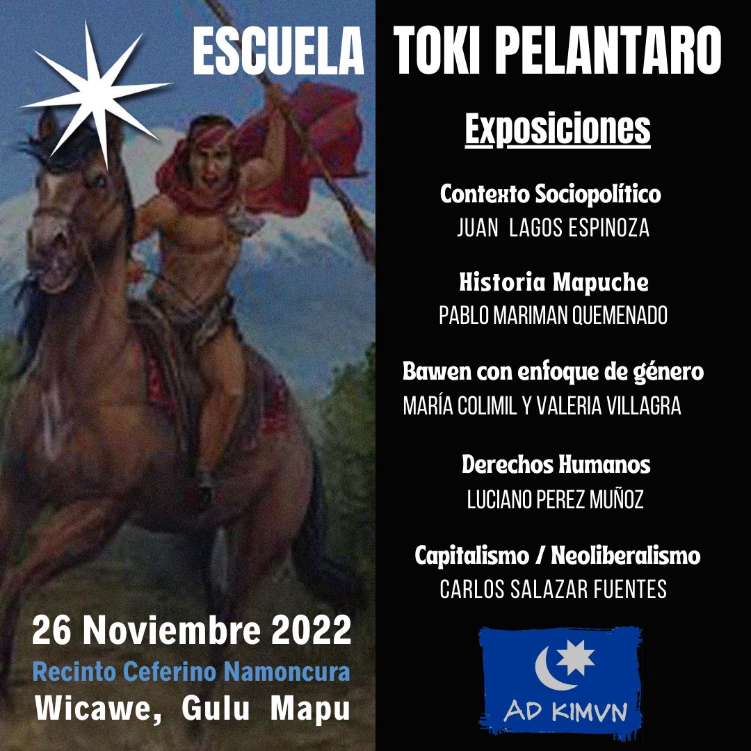 Con énfasis en la historia del Pueblo Mapuche y el análisis del contexto político actual, este sábado 26 de noviembre se realizará la 14° versión de la Escuela de Formación Sociopolítica Toki Pelantaro de la Asociación Mapuche Ad Kimvn, como ya es tradición, en el Centro de Capacitación Ceferino Namoncura de Padre las Casas.